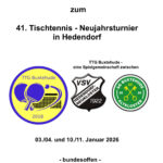 2025 fand die Jubiläumsauflage des Neujahrsturnier der TTG Buxtehude statt. Zum bereits 40. Mal traten die Spielerrinnen und Spieler an den ersten Januarwochenende in 2-Gegen-2-Duellen (2er-Mannschaft Corbillon-Cup-System) an. Im besonderen Spielmodus gibt es zunächst zwei Einzel, die über ein Doppel in zwei weiteren Einzelspielen enden. …